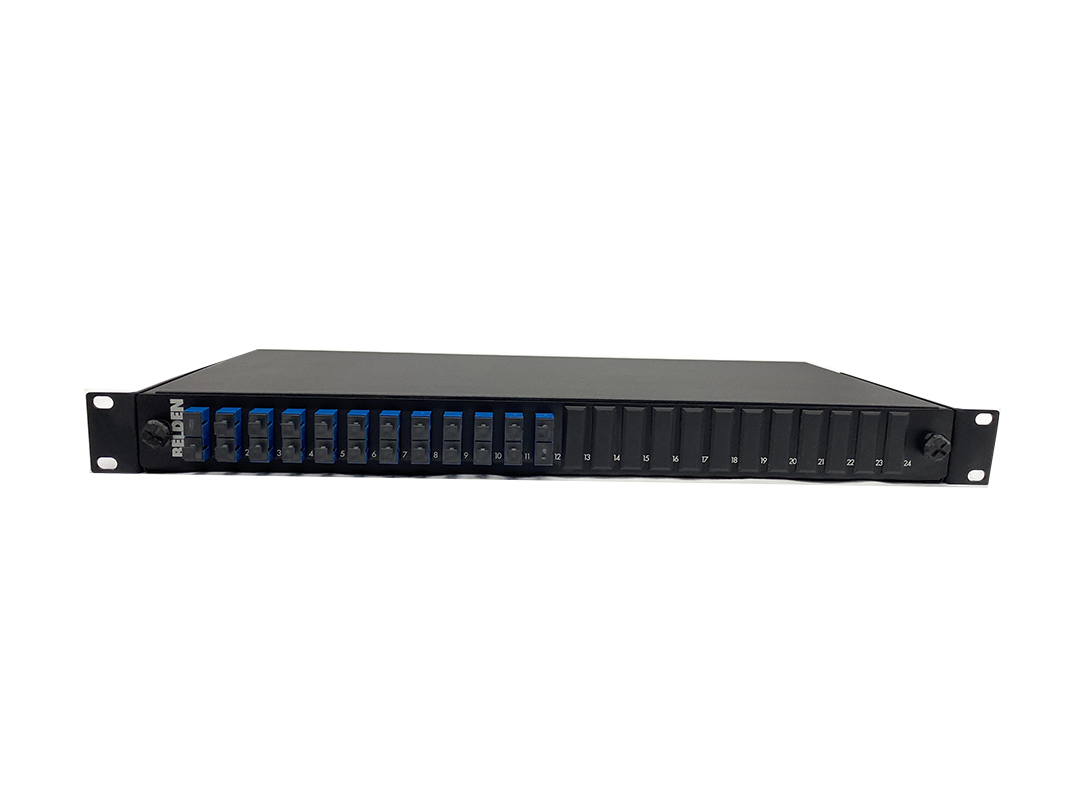 DATACOM - 1U 19" 12 PORT SC DUPLEX UNLOADED SLIDING PATCH PANEL WITH SPLICE TRAY-BLACK - DC-PPU-19-FO-12SCD-BK