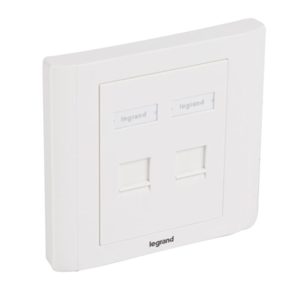 Opterna Angular Faceplate 86 x 86mm for 2 keystone Jack, U.K Standard- CAT 6A With Shutters, White (SCSAFPUK2WH)